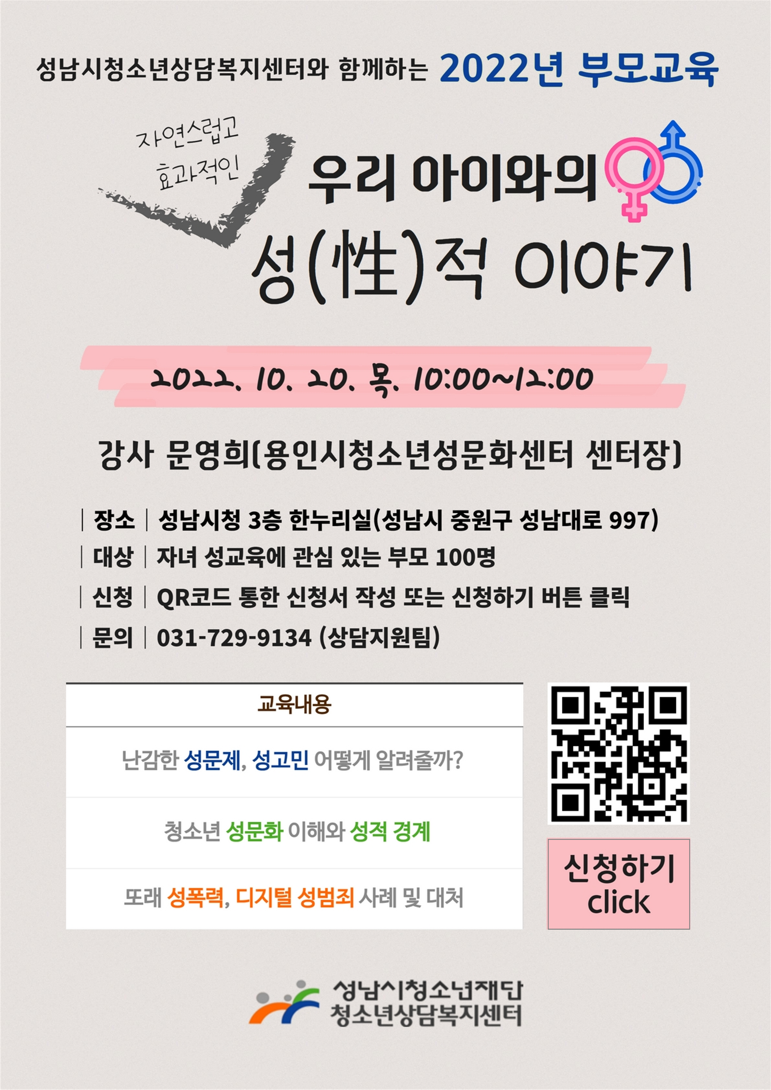 ¼º³²½Ãû¼Ò³âÀç´Ü û¼Ò³â»ó´ãº¹Áö¼¾ÅÍ¿¡¼ 2022³â ºÎ¸ð Ư°¡º¿ì¸® ¾ÆÀÌ¿ÍÀÇ ¼º(àõ)Àû À̾߱⡻¸¦ ´ÙÀ½°ú °°ÀÌ ÁøÇàÇÏ¿À´Ï Âü¼®À» ¿øÇϽô Çкθð´Ô²²¼´Â ½Åû ¹æ¹ý¿¡ µû¶ó ½ÅÃ»ÇØÁֽñ⠹ٶø´Ï´Ù.¡¡