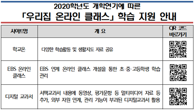 2020Çг⵵ °³Çп¬±â¿¡ µû¸¥ [¿ì¸®Áý ¿Â¶óÀΠŬ·¡½º] °íµîÇб³ ÇнÀ Áö¿ø »çÀÌÆ®¸¦ ¾È³»µå¸®¿À´Ï °¡Á¤¿¡¼ Àû±Ø Ȱ¿ëÇϽñ⠹ٶø´Ï´Ù.