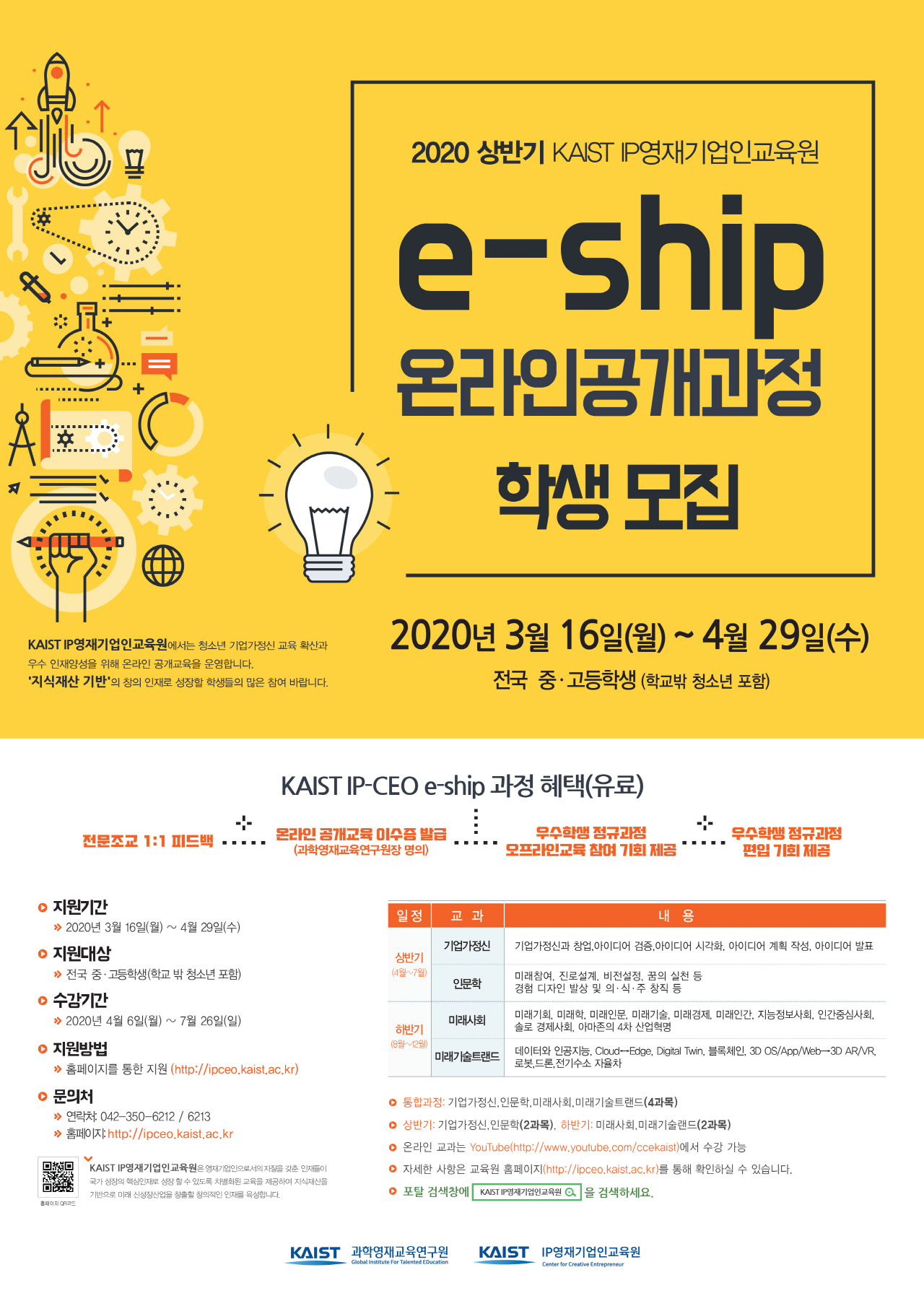 2020³âµµ »ó¹Ý±â KAIST IP¿µÀç±â¾÷Àα³À°¿ø 'e-ship ¿Â¶óÀÎ °ø°³±³À°°úÁ¤' ±³À°»ý ¸ðÁý¾È³»