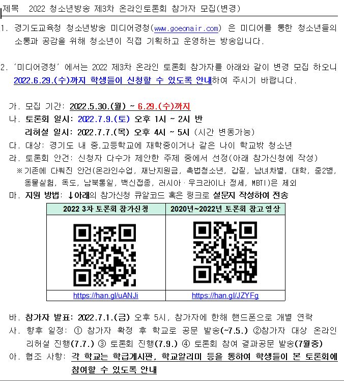 2022 û¼Ò³â¹æ¼Û Á¦3Â÷ ¿Â¶óÀÎÅä·Ðȸ Âü°¡ÀÚ ¸ðÁý(º¯°æ)