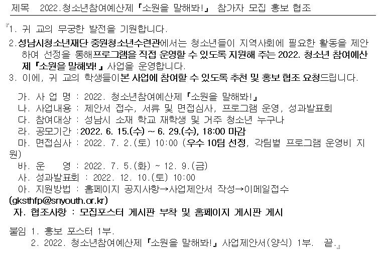 ¼º³²½Ãû¼Ò³âÀç´Ü Áß¿øÃ»¼Ò³â¼ö·Ã°ü ¼º³²½Ãû¼Ò³âÀç´Ü_2022.û¼Ò³âÂü¿©¿¹»êÁ¦¡º¼Ò¿øÀ» ¸»ÇغÁ!¡»»ç¾÷Á¦¾È¼­(¾ç½Ä).hwp ¼º³²½Ãû¼Ò³âÀç´Ü Áß¿øÃ»¼Ò³â¼ö·Ã°ü ¼º³²½Ãû¼Ò³âÀç´Ü_2022.û¼Ò³âÂü¿©¿¹»êÁ¦¡º¼Ò¿øÀ» ¸»ÇغÁ!¡»»ç¾÷Á¦¾È¼­(¾ç½Ä).hwp    ´Ù¿î·Îµå ¼ö : [ 7 ]