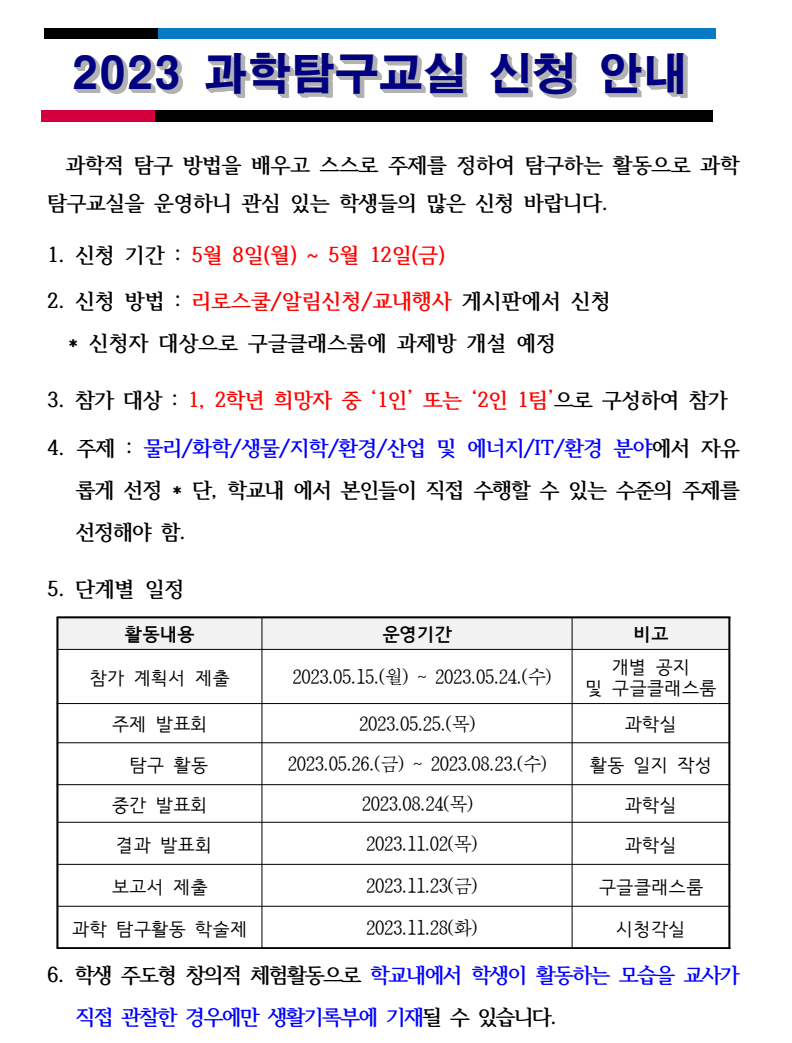 2023Çг⵵ °úÇÐŽ±¸±³½Ç ½Åû ¾È³»