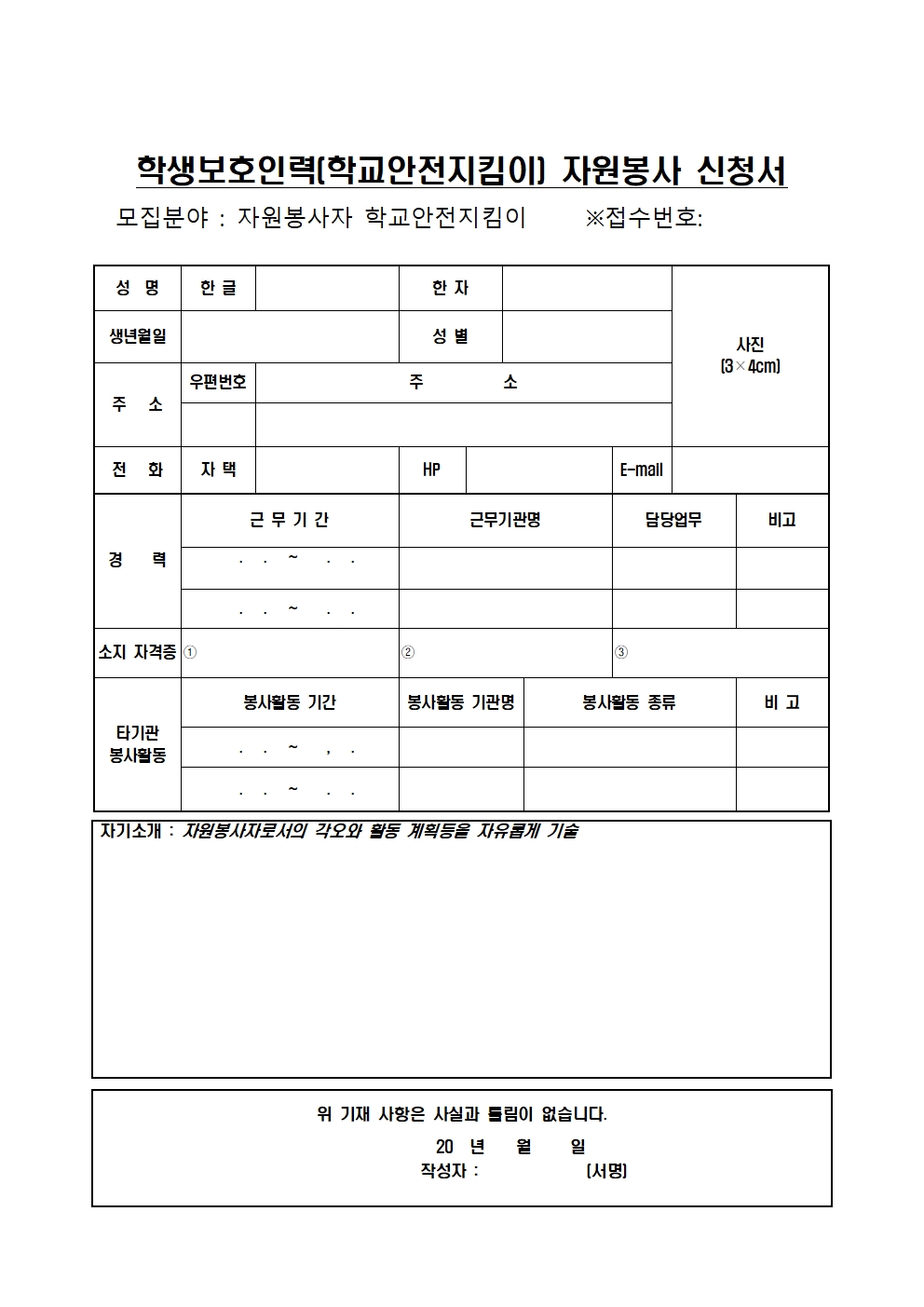 Çлýº¸È£Àη ÀÚ¿øºÀ»çÀÚ ¸ðÁý°ø°í ¹× ÀÚ¿øºÀ»ç ½Åû¼­(¿îÁß°í).hwpx Çлýº¸È£Àη ÀÚ¿øºÀ»çÀÚ ¸ðÁý°ø°í ¹× ÀÚ¿øºÀ»ç ½Åû¼­(¿îÁß°í).hwpx   ´Ù¿î·Îµå ¼ö : [ 17 ]