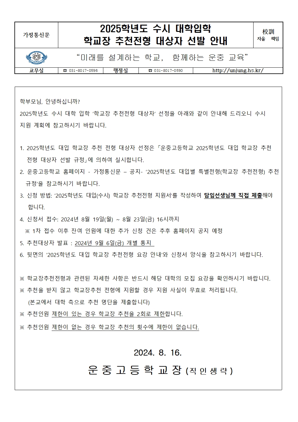 2025Çг⵵ ¼ö½Ã ´ëÇÐÀÔÇÐ Çб³Àå ÃßõÀüÇü ´ë»óÀÚ ¼±¹ß ¾È³»