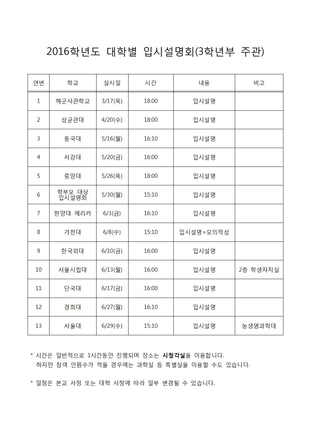 2016Çг⵵ ´ëÇк° ÀԽü³¸íȸ ÀÏÁ¤(¼öÁ¤)