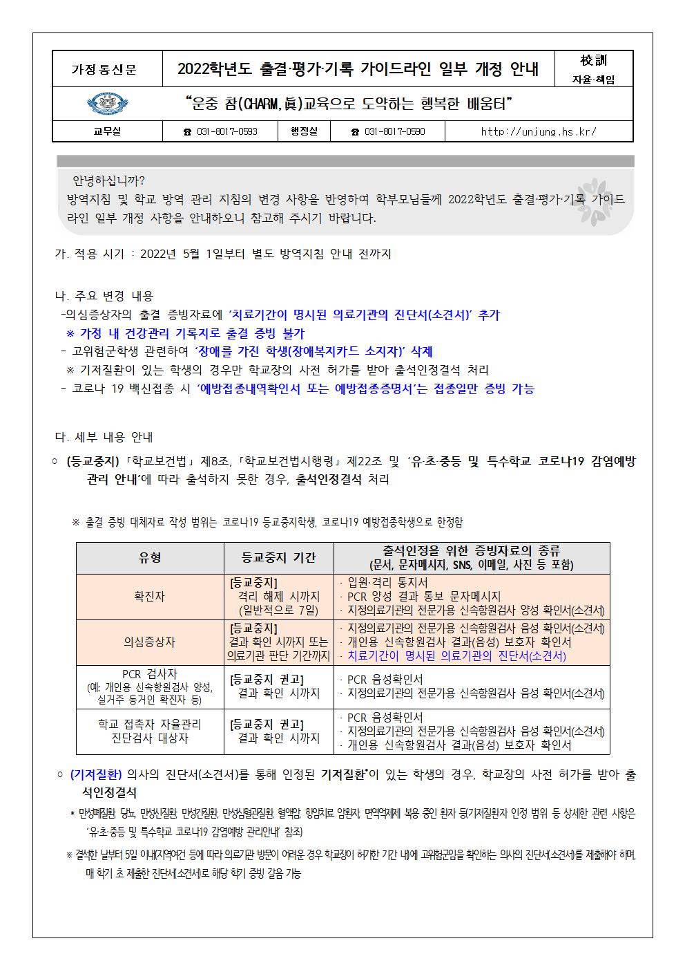 2022Çг⵵ Ãâ°á‧Æò°¡‧±â·Ï °¡À̵å¶óÀÎ ÀϺΠ°³Á¤ ¾È³» °¡Á¤Åë½Å¹®