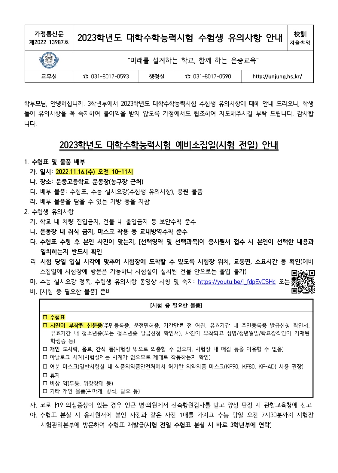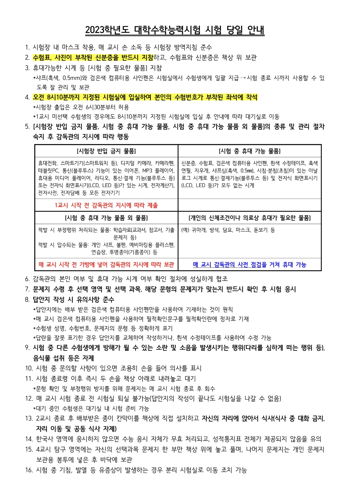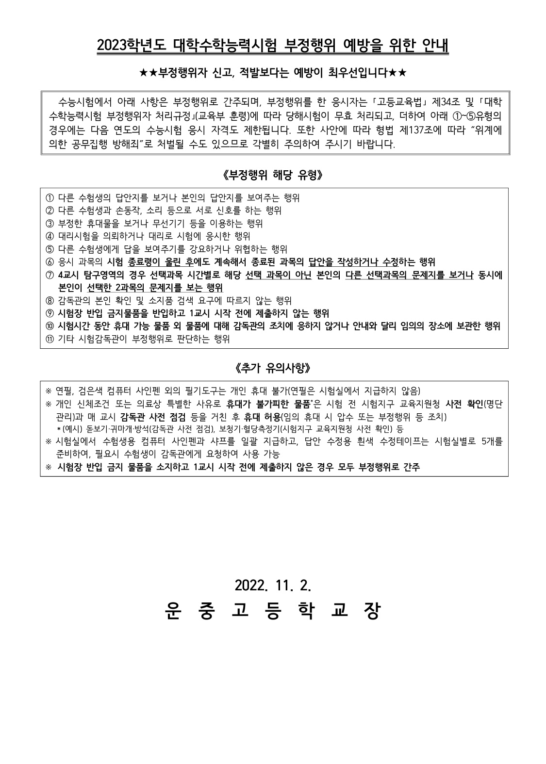 3ÇгâºÎ¿¡¼­ 2023Çг⵵ ´ëÇмöÇдɷ½ÃÇè ¼öÇè»ý À¯ÀÇ»çÇ׿¡ ´ëÇØ ¾È³» µå¸®¿À´Ï ¼öÇè»ýÀÌ ¼÷ÁöÇÒ ¼ö ÀÖµµ·Ï °¡Á¤¿¡¼­µµ ÇùÁ¶ÇÏ¿© ÁöµµÇØÁÖ½Ã±æ ºÎŹ µå¸³´Ï´Ù. °¨»çÇÕ´Ï´Ù.