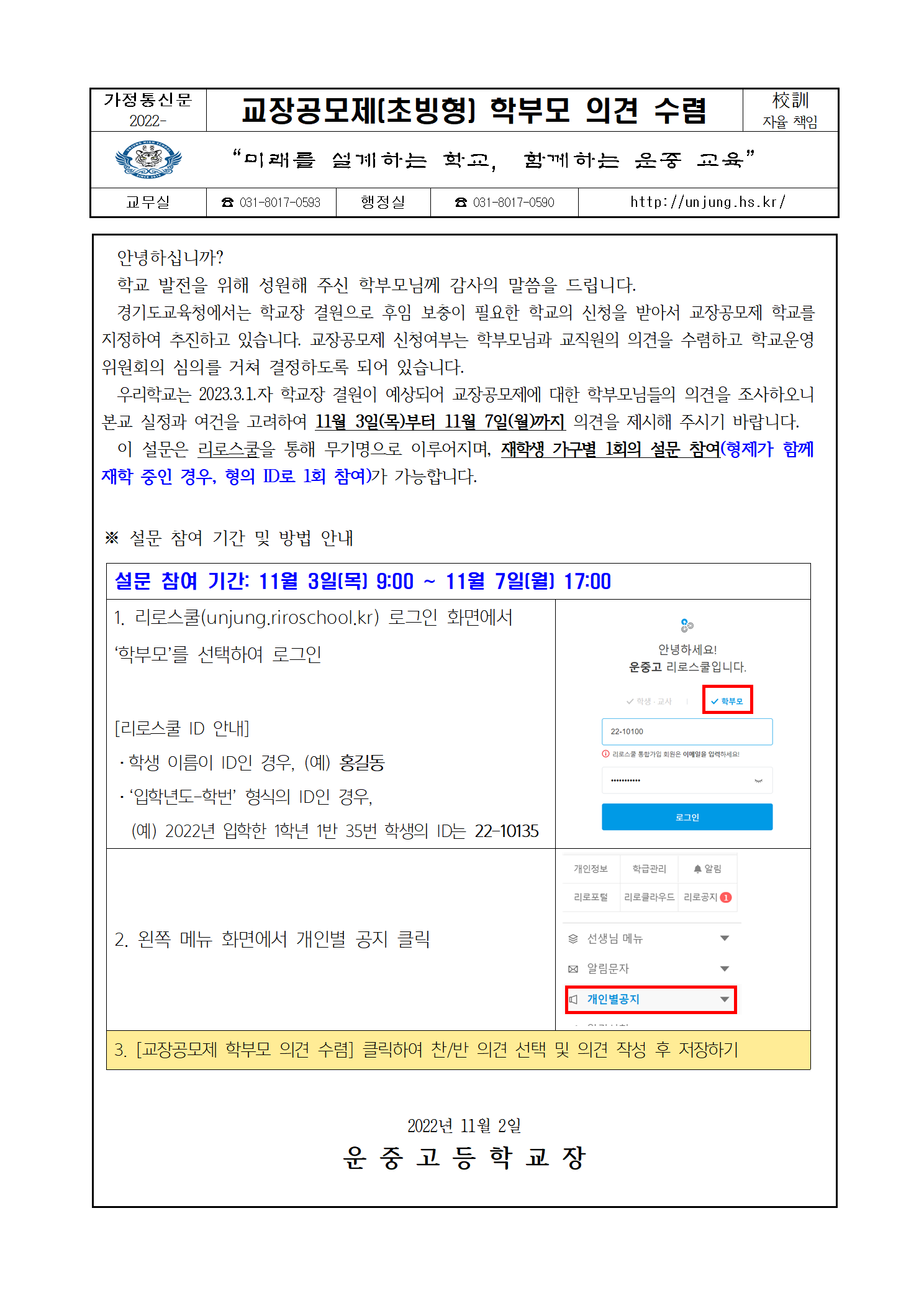 ¿îÁß°íµîÇб³ ¸®·Î½ºÄð ¹Ù·Î°¡±â: https://unjung.riroschool.kr/