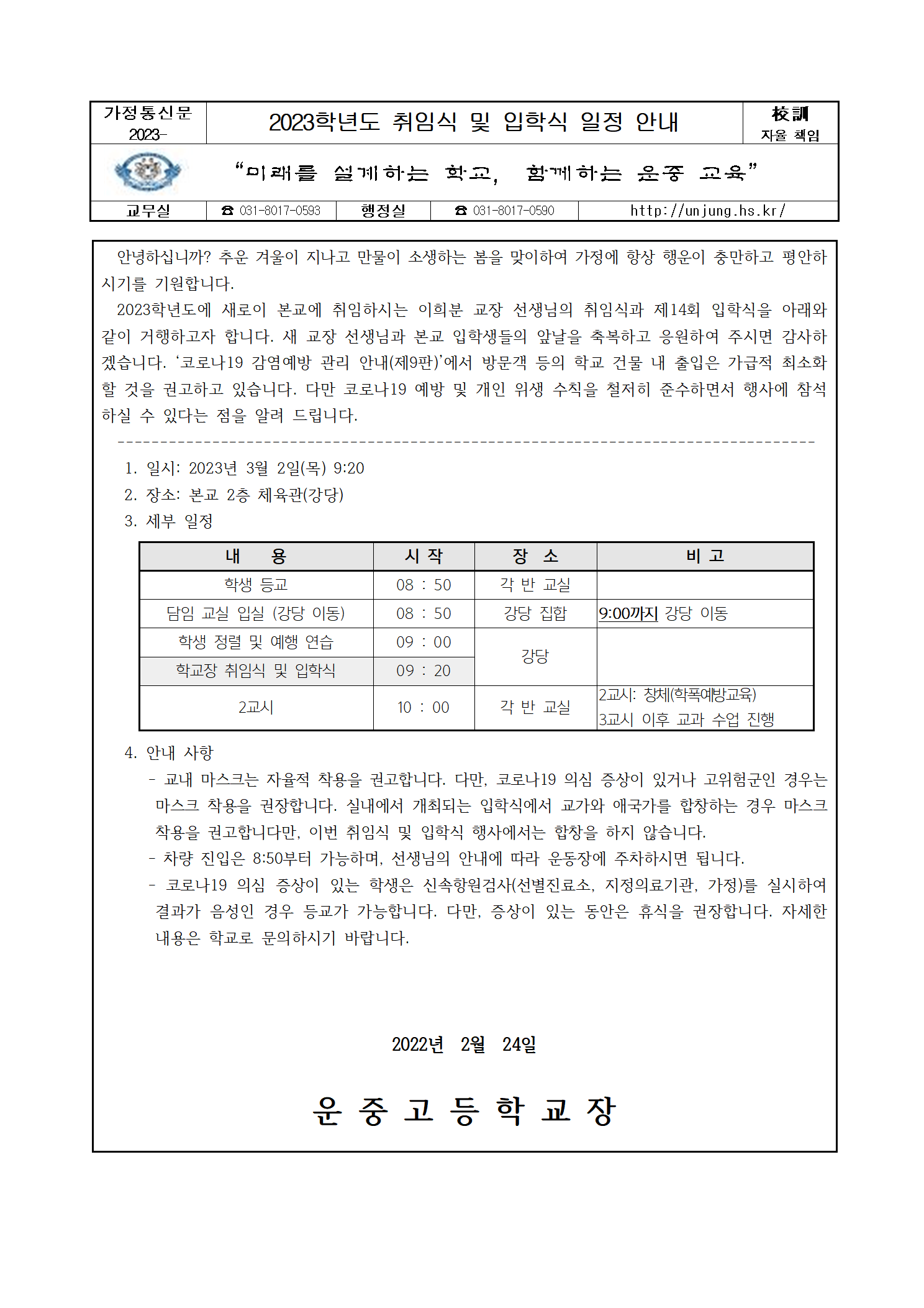 2023Çг⵵ ÃëÀÓ½Ä ¹× ÀÔÇÐ½Ä ÀÏÁ¤ ¾È³»