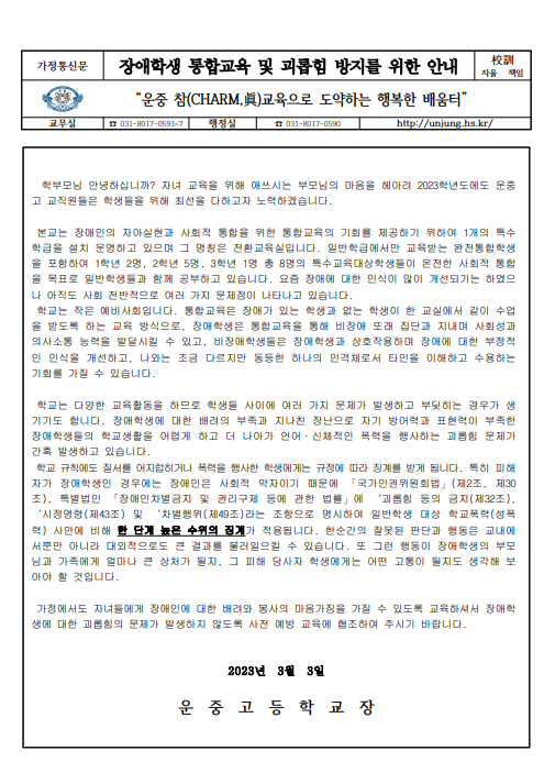 2023Çг⵵ Àå¾ÖÇлý ÅëÇÕ±³À° ¹× ±«·ÓÈû ¹æÁö¸¦ À§ÇÑ ¾È³» °¡Á¤Åë½Å¹®.pdf 2023Çг⵵ Àå¾ÖÇлý ÅëÇÕ±³À° ¹× ±«·ÓÈû ¹æÁö¸¦ À§ÇÑ ¾È³» °¡Á¤Åë½Å¹®.pdf    ´Ù¿î·Îµå ¼ö : [ 42 ]