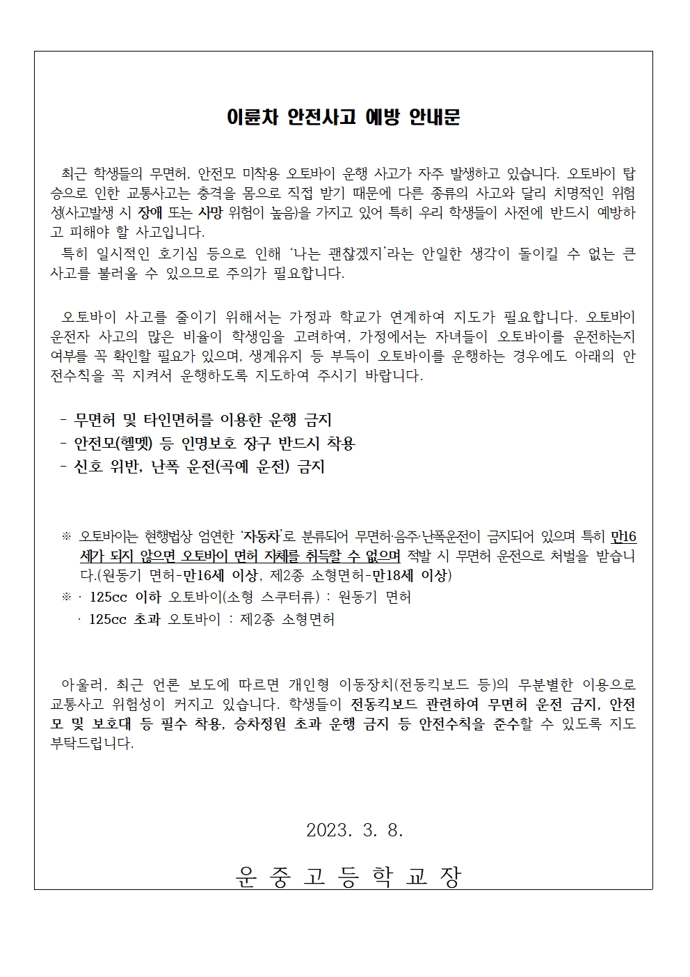 2023 Çлý µîÇϱ³½Ã Çлý ¾ÈÀü ¹× ±³Åë»ç°í ¿¹¹æ¿¡ ´ëÇÑ ¾È³»