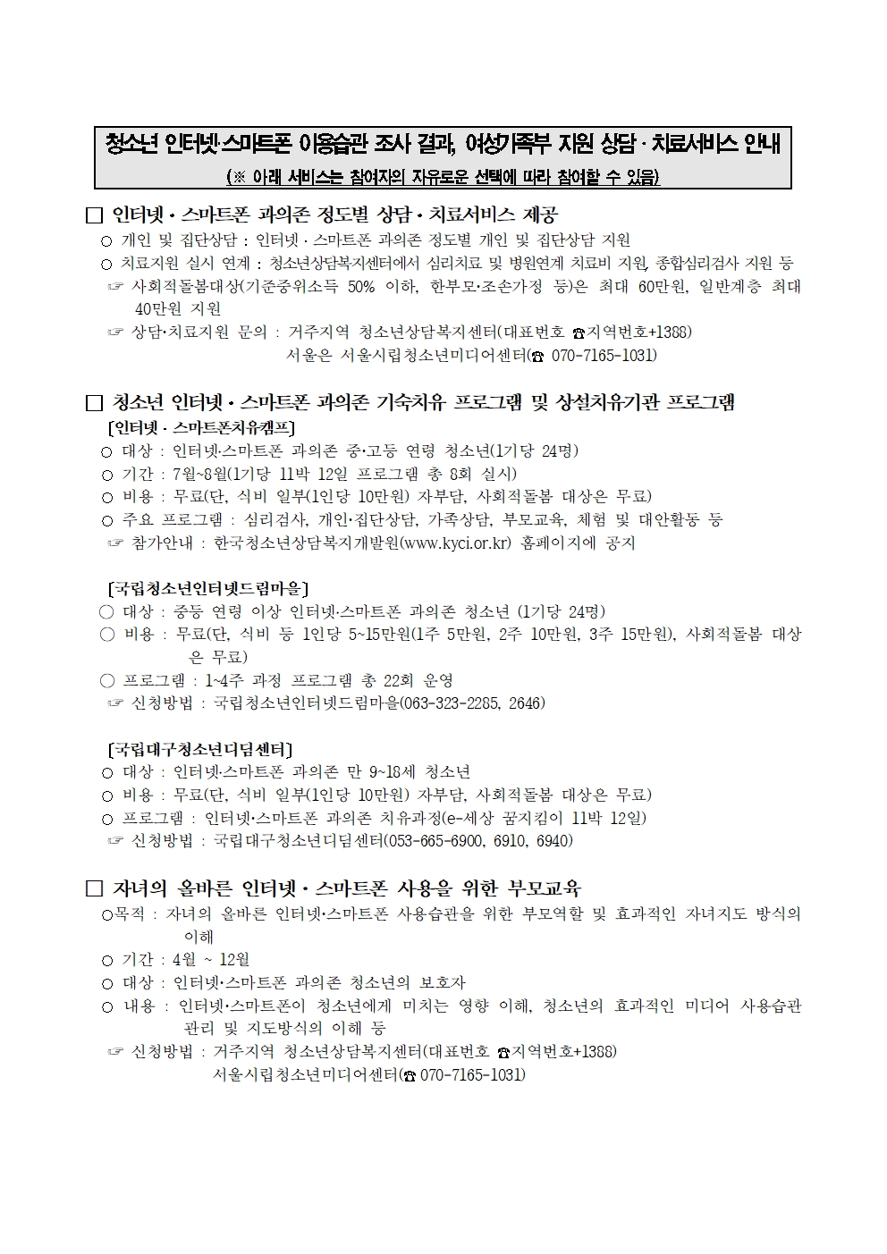 2023³â û¼Ò³â ÀÎÅͳݡ¤½º¸¶Æ®Æù °úÀÇÁ¸¿¡ ´ëÇÑ »ó´ã¡¤Ä¡·á Áö¿ø ¾È³»