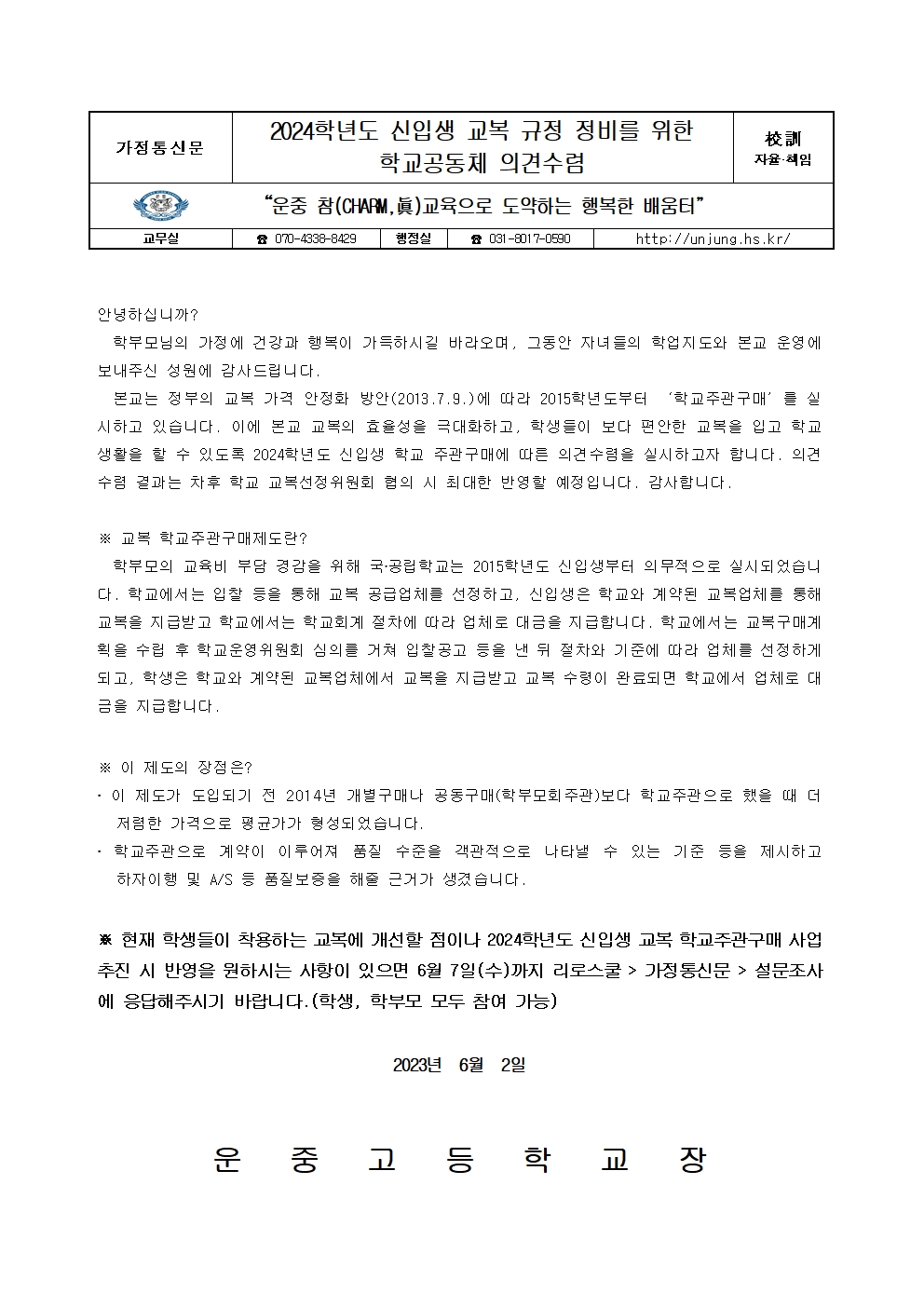 2024Çг⵵ ½ÅÀÔ»ý ±³º¹ ±ÔÁ¤ Á¤ºñ¸¦ À§ÇÑ Çб³°øµ¿Ã¼ Àǰ߼ö·Å