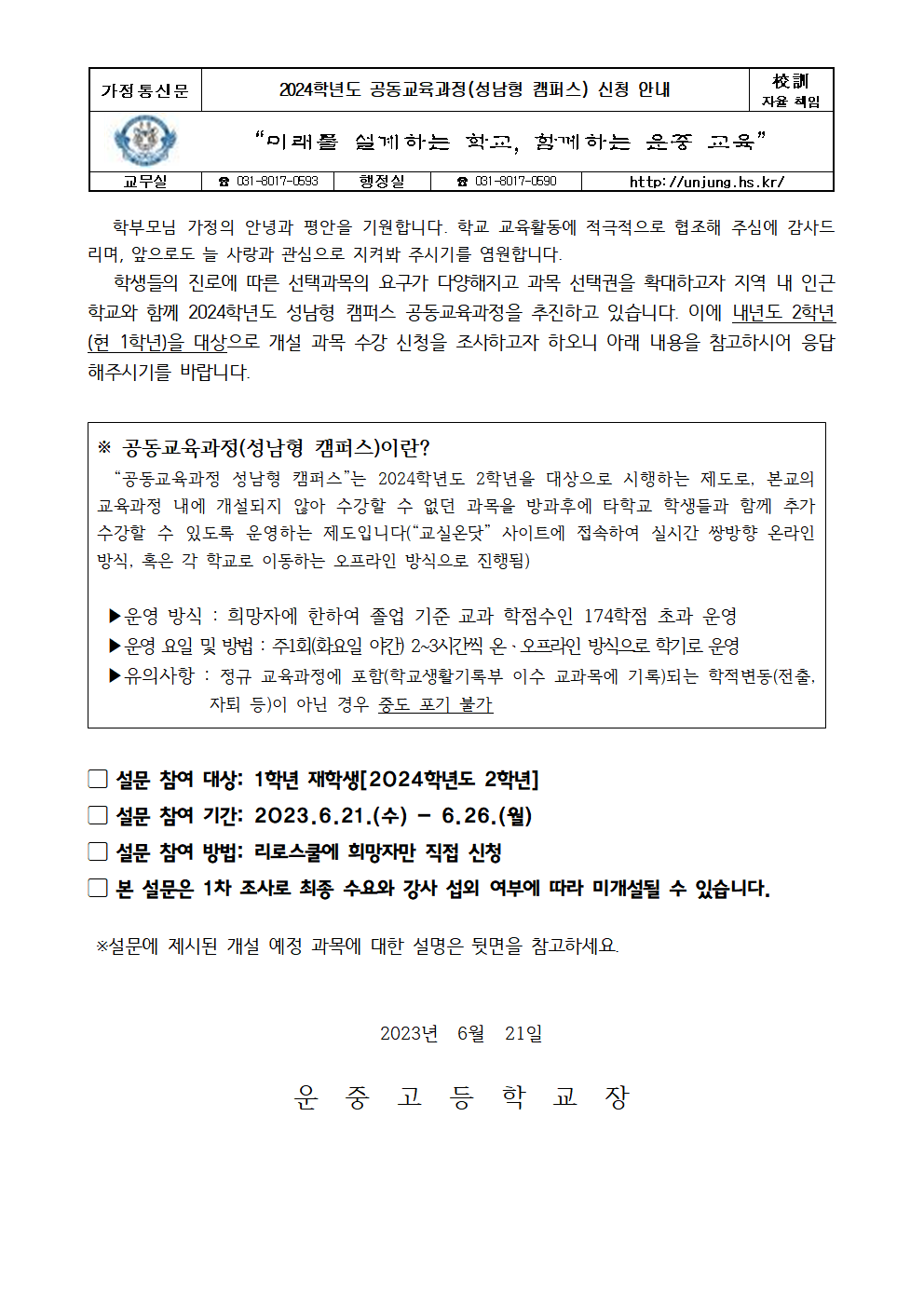 2024Çг⵵ °øµ¿±³À°°úÁ¤(¼º³²Çü Ä·ÆÛ½º) ½Åû ¾È³»