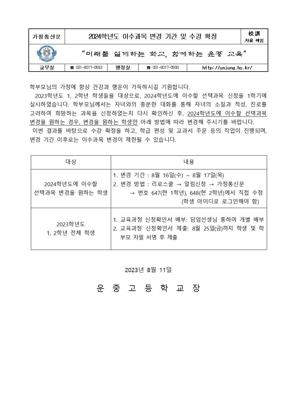 2024Çг⵵ À̼ö°ú¸ñ º¯°æ ±â°£ ¹× ¼ö°­ È®Á¤