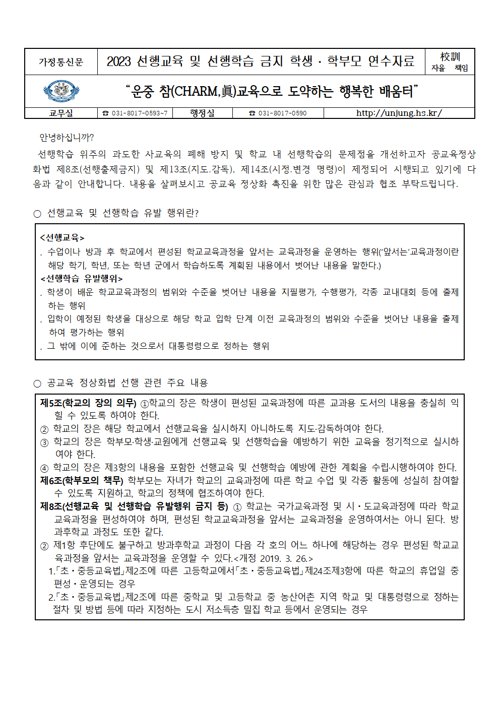 2023 ¼±Çà±³À° ¹× ¼±ÇàÇнÀ ±ÝÁö Çлý ․ Çкθ𠿬¼öÀÚ·á