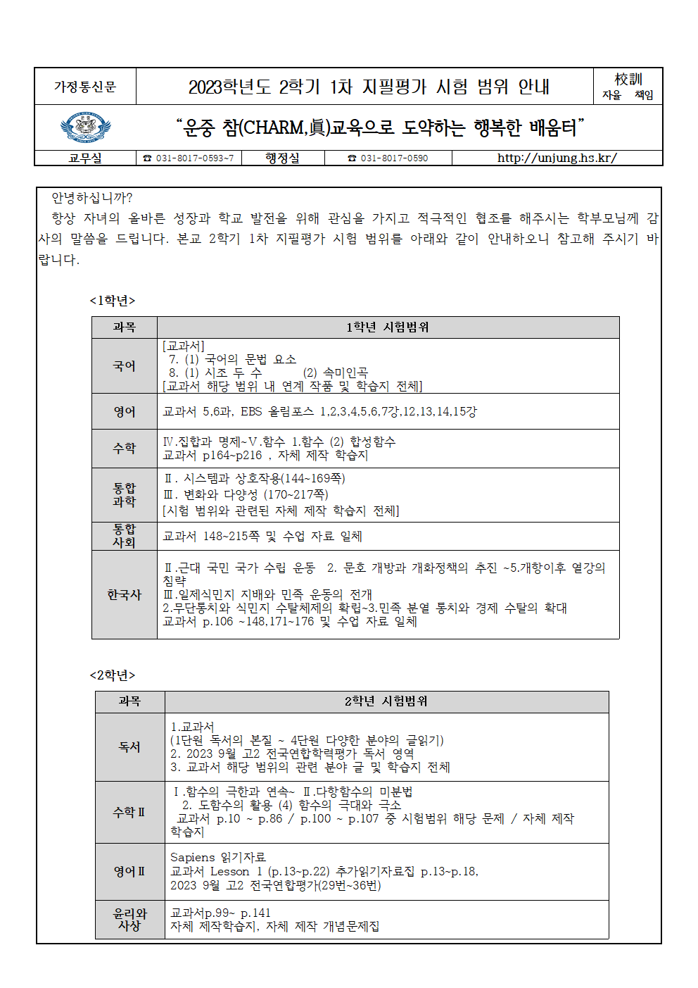 2023Çг⵵ 2Çбâ 1Â÷ ÁöÇÊÆò°¡ ½ÃÇè ¹üÀ§ ¾È³»