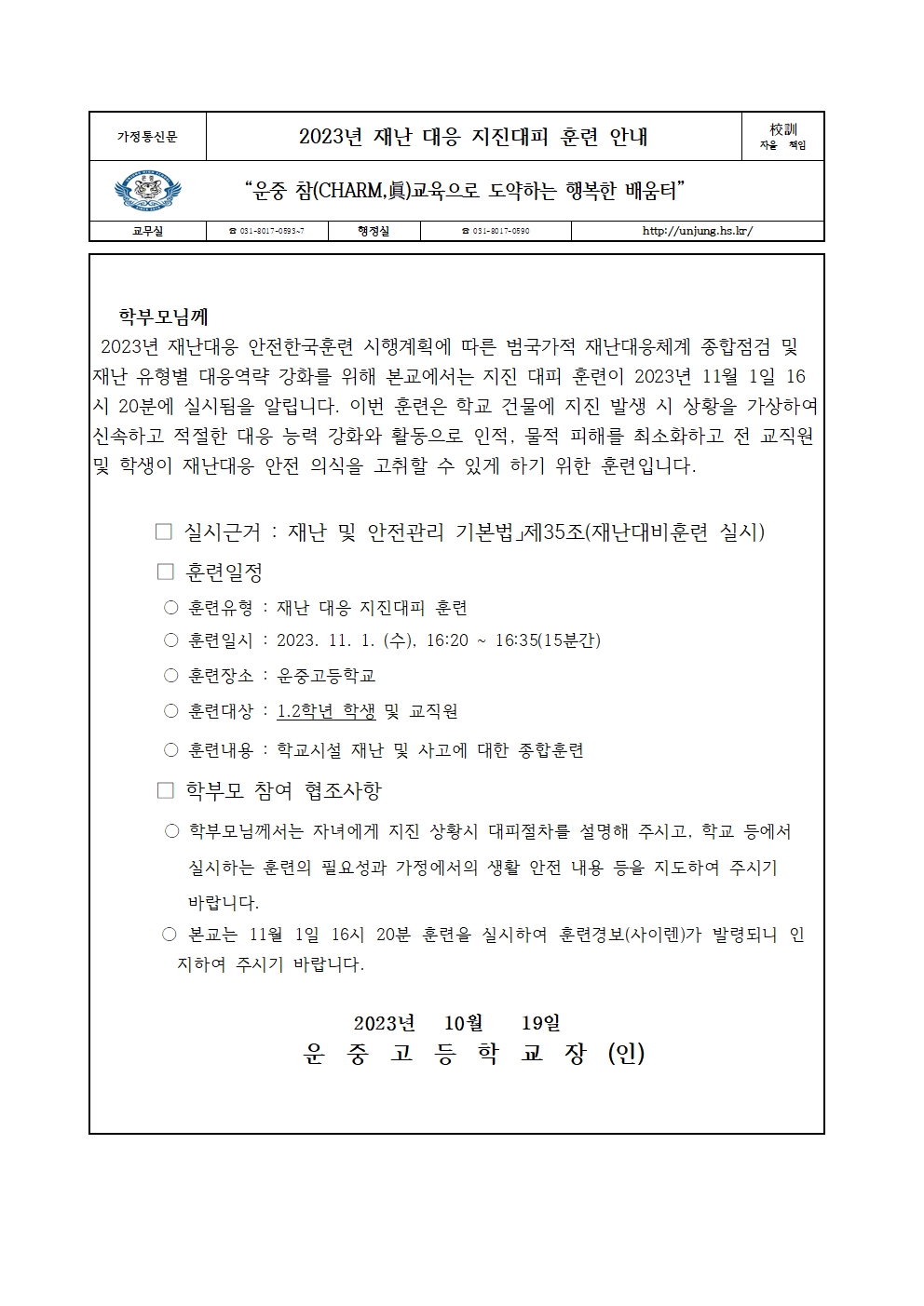 23³â Àç³­ ´ëÀÀ ÁöÁø´ëÇ¥ ÈÆ·Ã ¾È³» °¡Á¤Åë½Å¹®.hwp 23³â Àç³­ ´ëÀÀ ÁöÁø´ëÇ¥ ÈÆ·Ã ¾È³» °¡Á¤Åë½Å¹®.hwp    ´Ù¿î·Îµå ¼ö : [ 6 ]