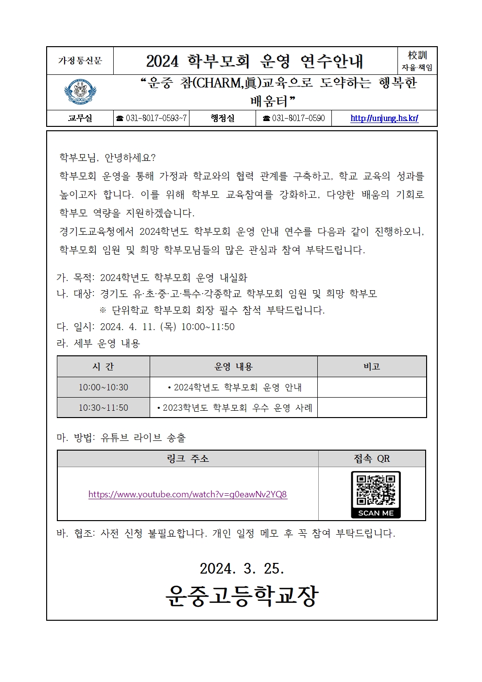 2024 Çкθðȸ ¿î¿µ ¿¬¼ö¾È³»_°¡Á¤Åë½Å¹®