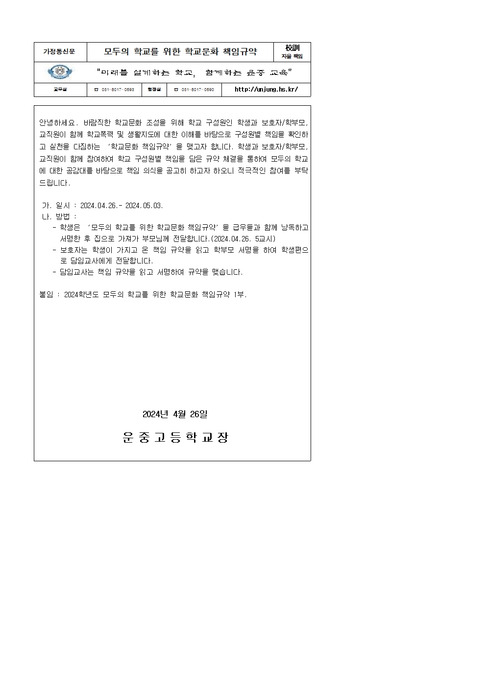 2024Çг⵵ ¸ðµÎÀÇ Çб³¸¦ À§ÇÑ Çб³¹®È­ Ã¥ÀÓ±Ô¾à °¡Á¤Åë½Å¹®