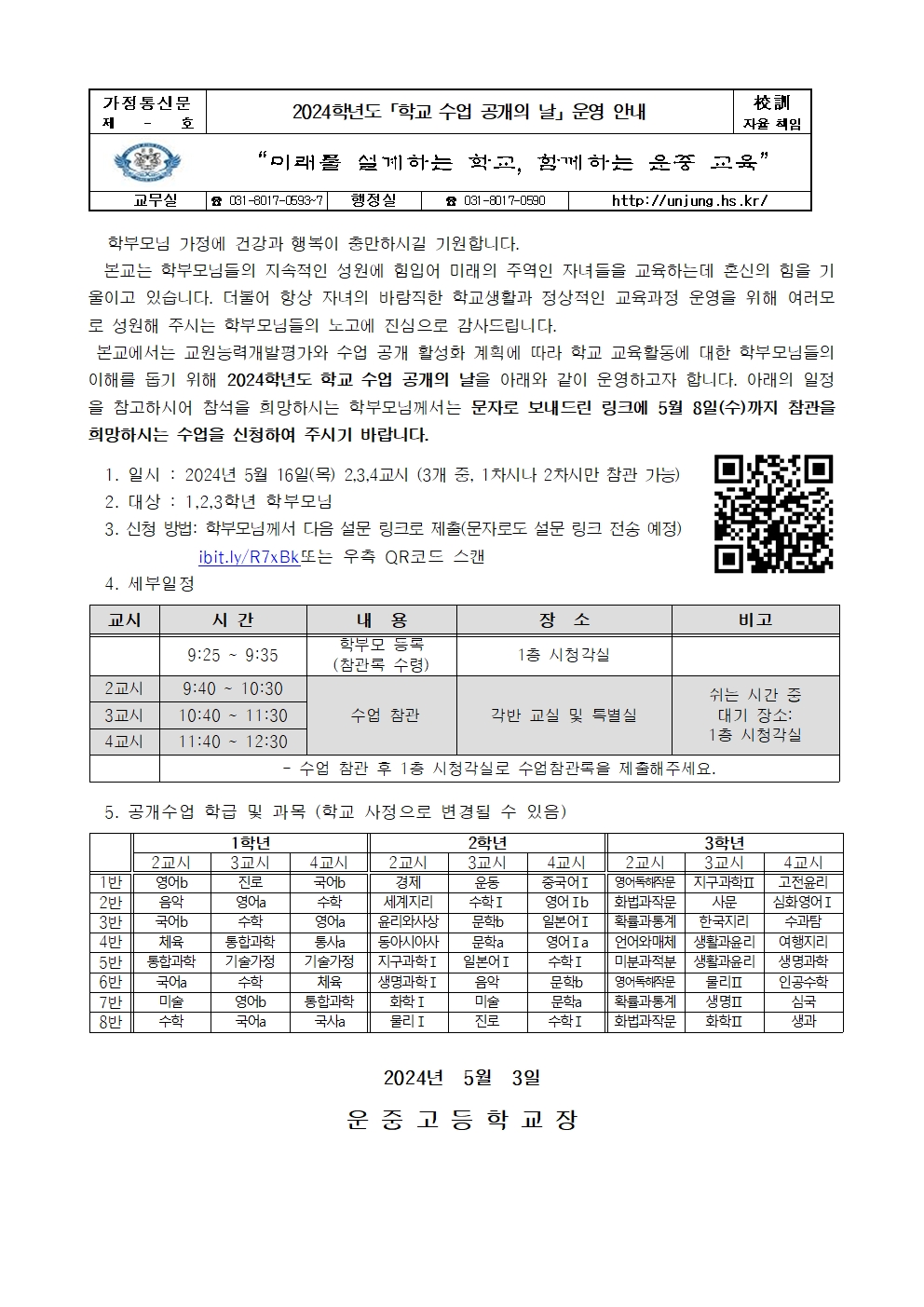 2024Çг⵵¡¸Çб³ ¼ö¾÷ °ø°³ÀÇ ³¯¡¹¿î¿µ ¾È³»
