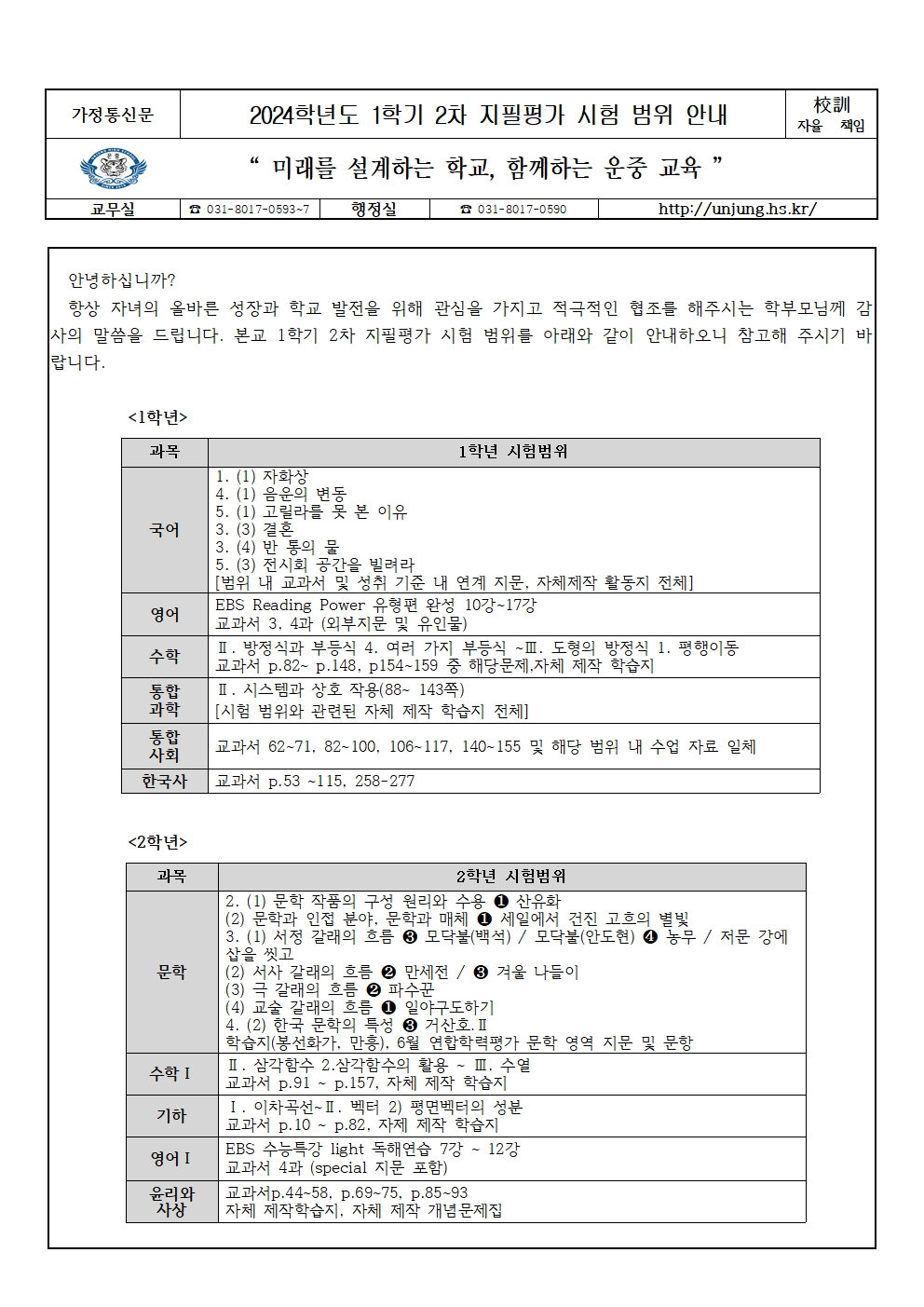 2024Çг⵵ 1Çбâ 2Â÷ ÁöÇÊÆò°¡ ½ÃÇè¹üÀ§ ¾È³»(°¡Á¤Åë½Å¹®)