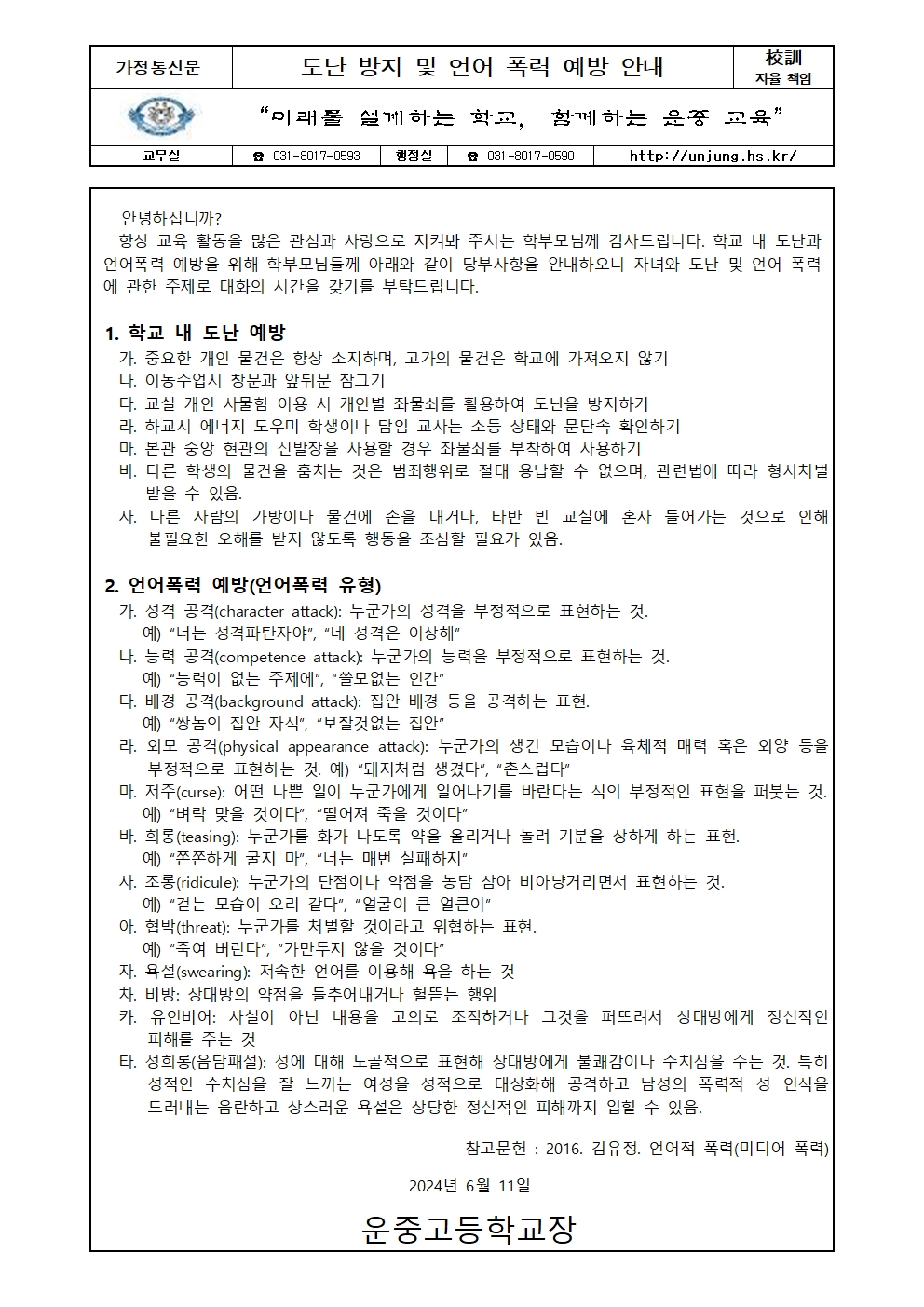 µµ³­ ¹æÁö ¹× ¾ð¾î Æø·Â ¿¹¹æ Çкθ𠱳À° °¡Á¤Åë½Å¹®.hwp µµ³­ ¹æÁö ¹× ¾ð¾î Æø·Â ¿¹¹æ Çкθ𠱳À° °¡Á¤Åë½Å¹®.hwp    ´Ù¿î·Îµå ¼ö : [ 7 ]