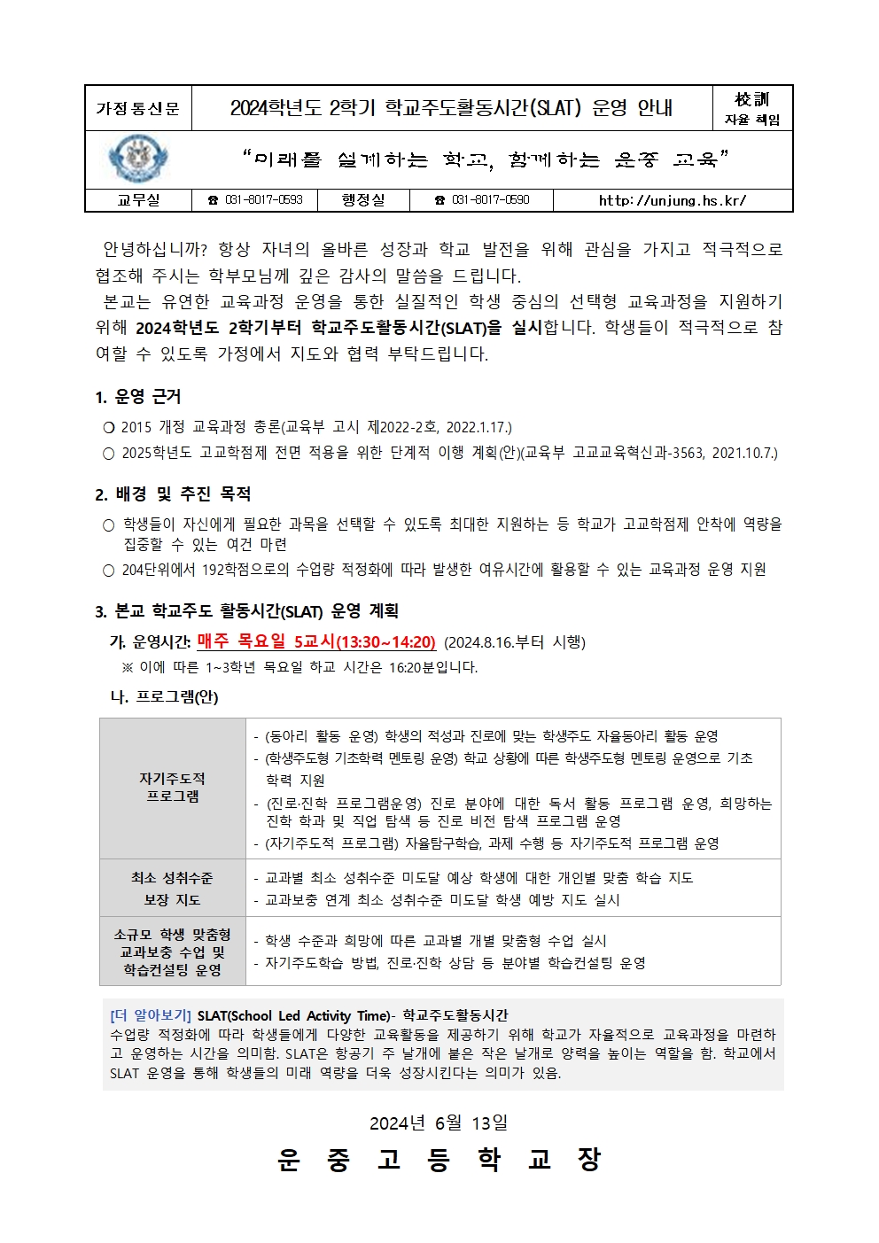 2024Çг⵵ 2Çбâ Çб³ÁÖµµÈ°µ¿½Ã°£(SLAT) ¿î¿µ ¾È³»