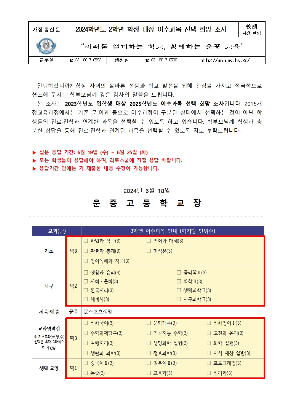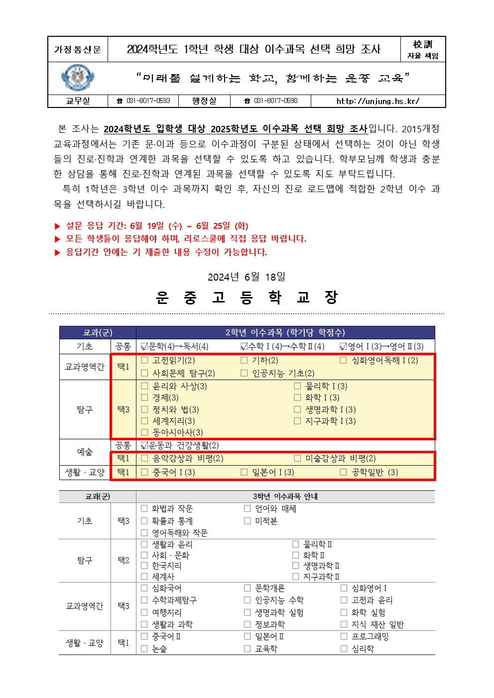 2024Çг⵵ 1, 2Çг⠴ë»ó À̼ö°ú¸ñ ¼±Åà Èñ¸Á Á¶»ç °¡Á¤Åë½Å¹®