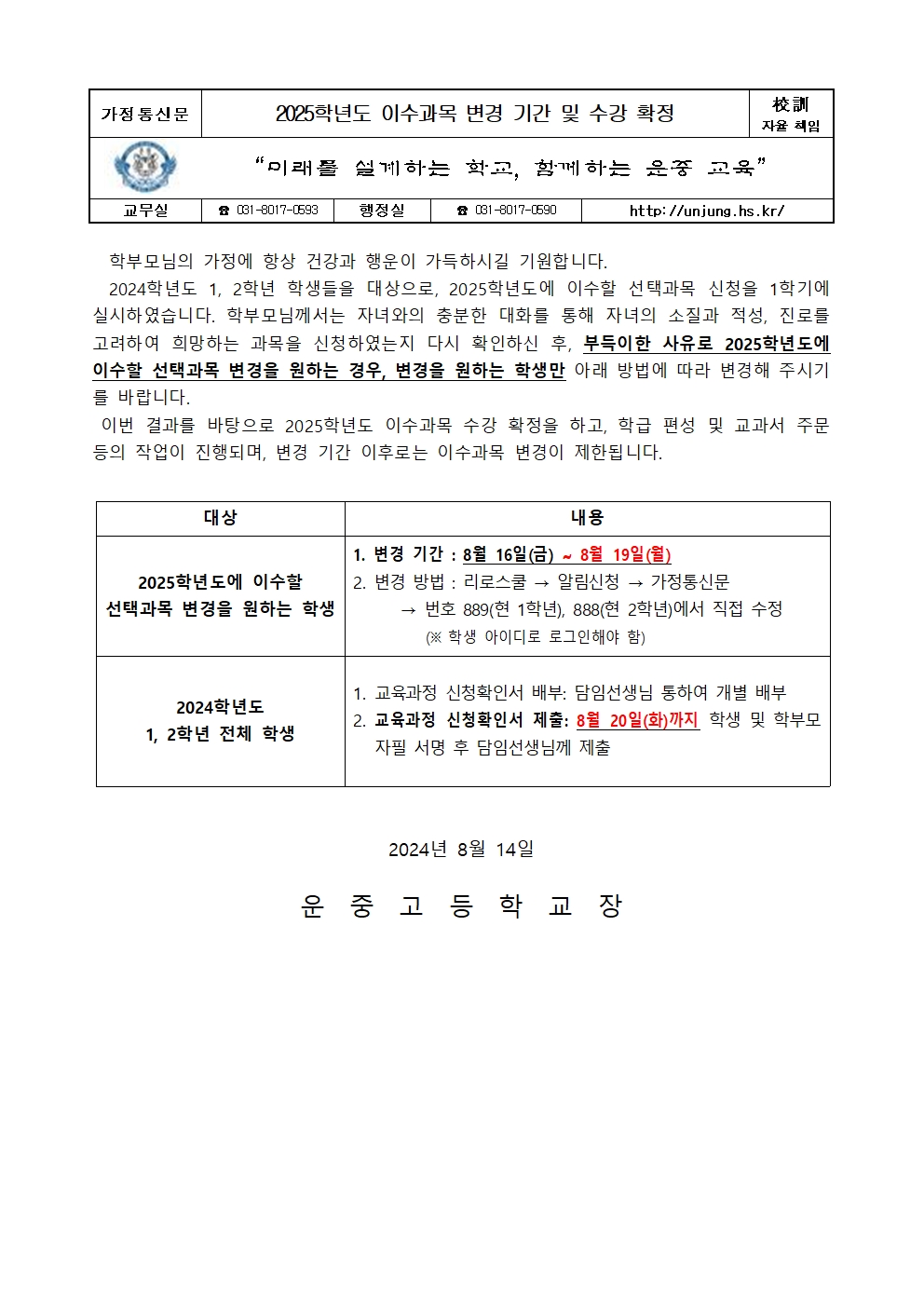 2025Çг⵵ À̼ö°ú¸ñ º¯°æ ±â°£ ¹× ¼ö°­ È®Á¤