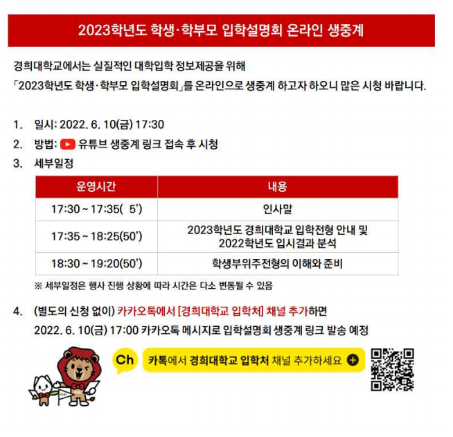 2023Çг⵵ °æÈñ´ëÇб³ Çлý,Çкθð ÀÔÇм³¸íȸ ¿Â¶óÀÎ »ýÁß°è¾È³»