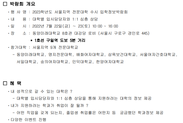2023Çг⵵ ¼­¿ïÁö¿ª Àü¹®´ëÇÐ ¼ö½Ã ÀÔÇÐÁ¤º¸¹Ú¶÷ȸ ¾È³»