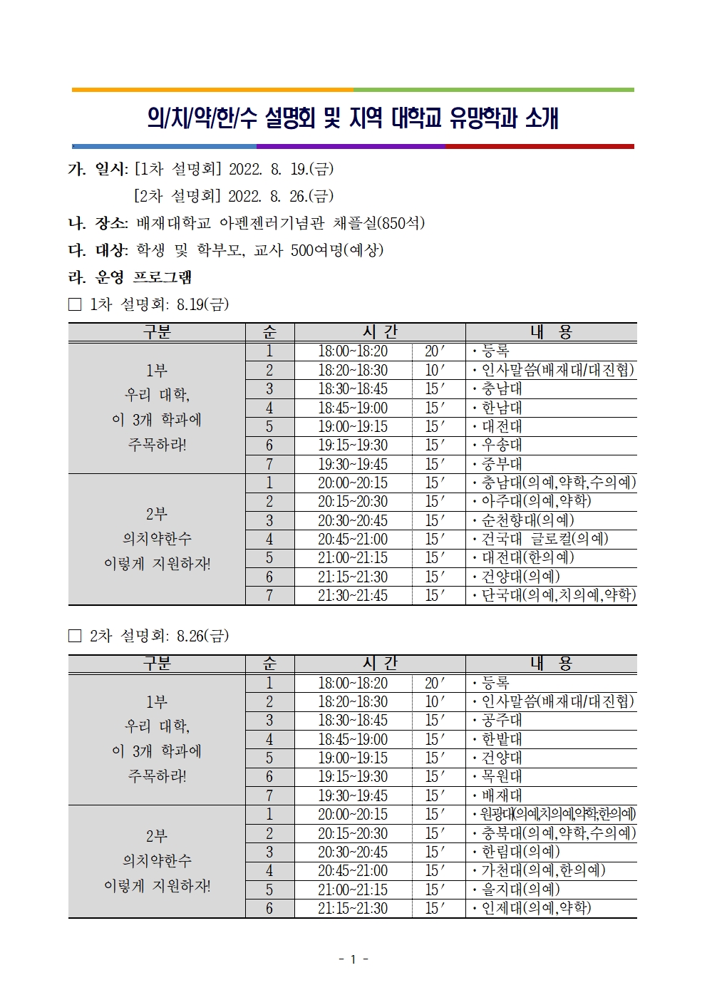 ¹èÀç´ëÇб³ ÀÇÄ¡¾àÇѼö ¹× ´ëÀü Áö¿ª ´ëÇб³ À¯¸ÁÇаú ¼³¸íȸ ¾È³»