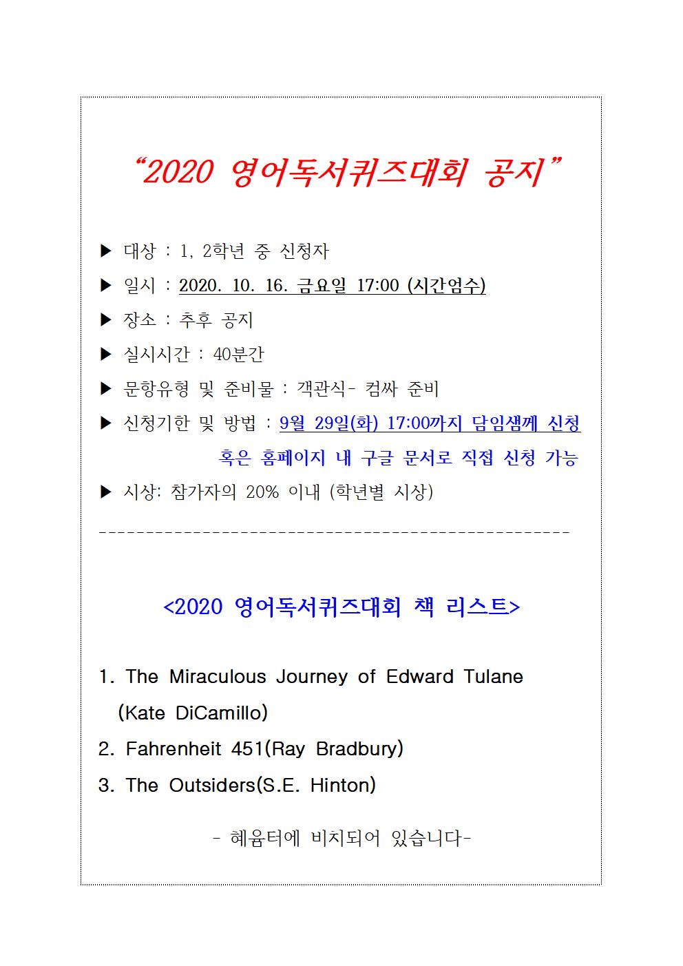 2020 ¿µ¾îµ¶¼­ÄûÁî´ëȸ °øÁö