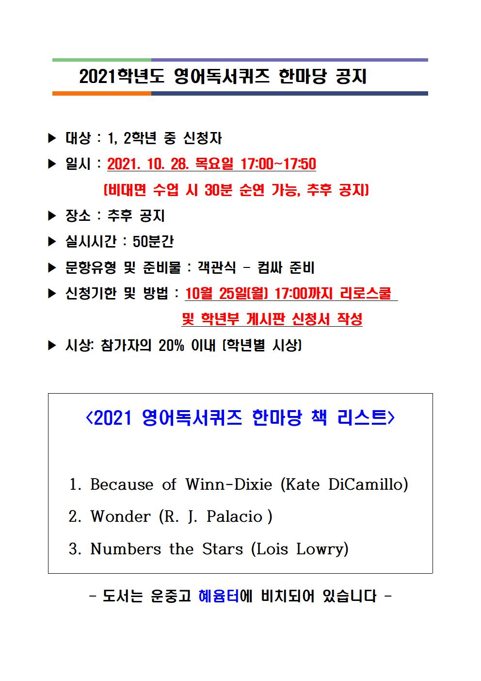 2021 ¿µ¾îµ¶¼­ÄûÁî ÇѸ¶´ç ¾È³»[10/28 ½Ç½Ã]