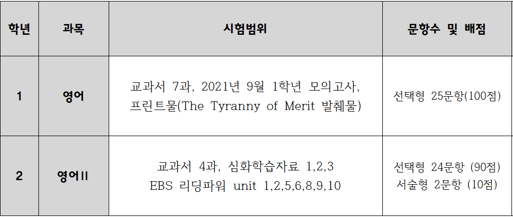 [1,2Çгâ]2022-2Çбâ 1Â÷ÁöÇÊ ½ÃÇè¹üÀ§(¿µ¾î°ú)