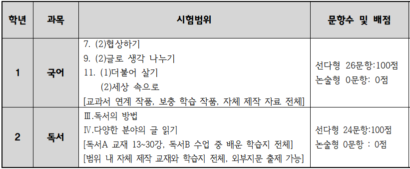 [1,2Çгâ]2021-2Çбâ 2Â÷ÁöÇÊ ½ÃÇè¹üÀ§(±¹¾î°ú)