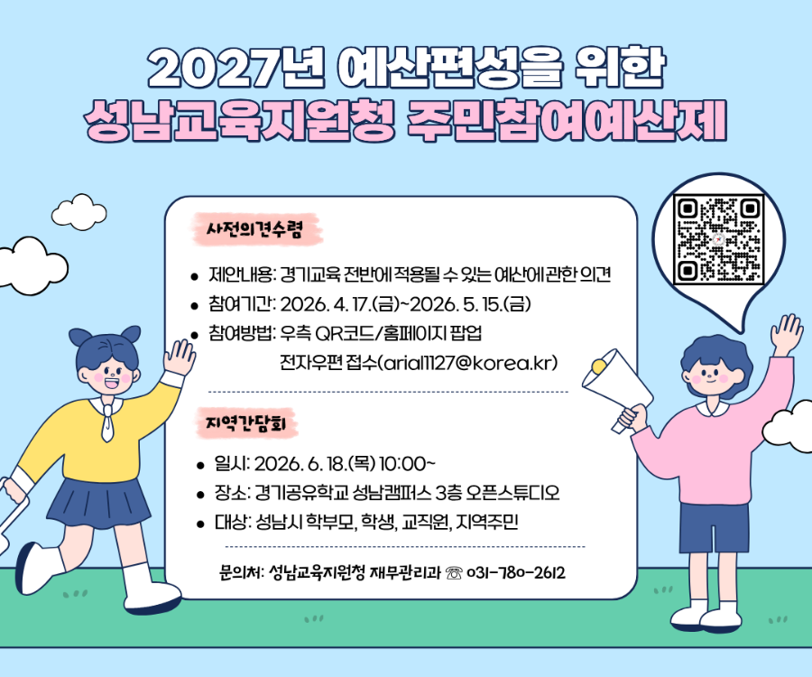 2027³â ¿¹»êÆí¼ºÀ» À§ÇÑ ¼º³²±³À°Áö¿øÃ» ÁÖ¹ÎÂü¿©¿¹»êÁ¦