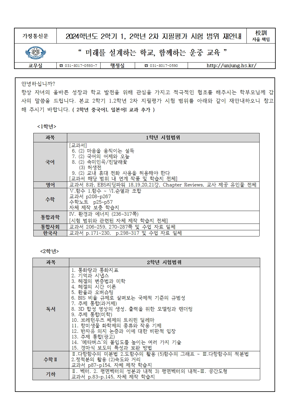 2024Çг⵵ 2Çбâ 1,2Çгâ 2Â÷ ÁöÇÊÆò°¡ ½ÃÇè¹üÀ§ Àç¾È³»(°¡Á¤Åë½Å¹®)